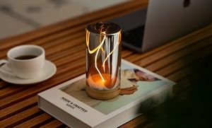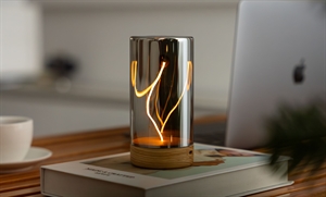 Denne bordlampe kombinerer hvid ask, glas og magnet i et kompakt design, der måler 6,8 x 6,8 x 13,7 cm. Med en vægt på 172 gram kan du nemt flytte lampen rundt i hjemmet, mens den reflekterende overflade skaber en varm glød.