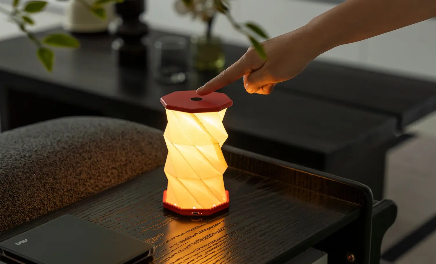 Denne kompakte bordlampe fra Gingko kombinerer funktionel belysning med et snoet design i koralrød. Med en højde på 14 cm og en diameter på 8,2 cm passer den ind på små borde, natborde eller hylder uden at fylde.