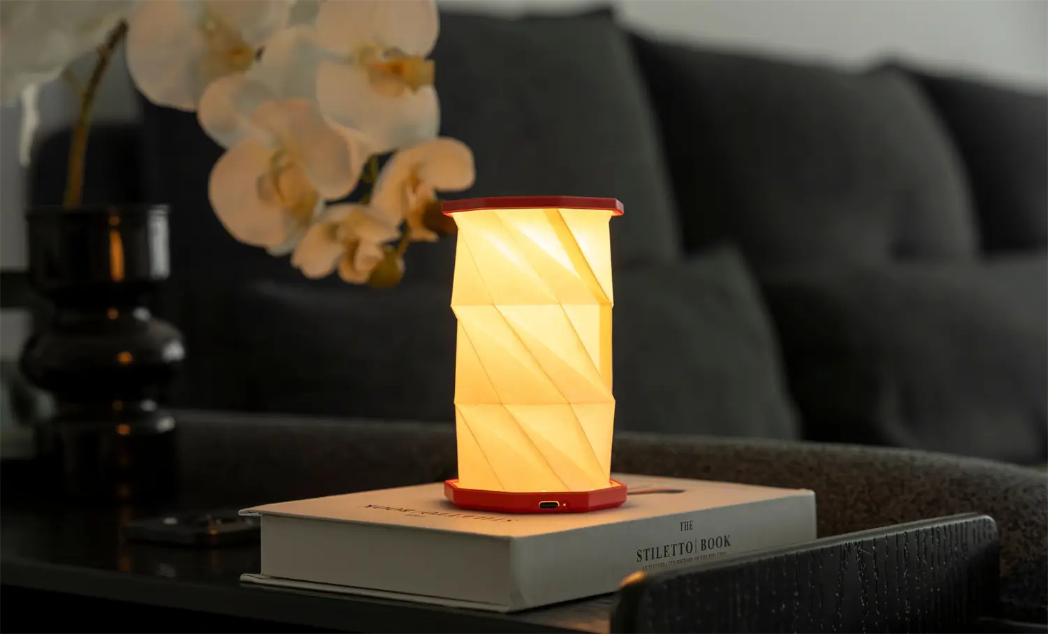RGB-belysningen giver dig mulighed for at skifte mellem forskellige farvetoner, så lampen kan tilpasses dit humør eller anledning. Det genopladelige batteri betyder, at du kan flytte lampen frit uden at være bundet til en stikkontakt. Materialet er ABS og slidstærkt papir, der holder til daglig brug.