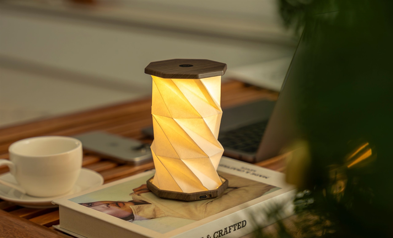 Denne bordlampe fra Gingko kombinerer skulpturel form med praktisk funktionalitet. Med sine 14 cm i højden og 8,2 cm i diameter passer den ind på natbordet, skrivebordet eller en hylde uden at fylde. Smart Touch-funktionen giver dig mulighed for at justere lysstyrken med et enkelt tryk, så du kan tilpasse belysningen efter behov.
