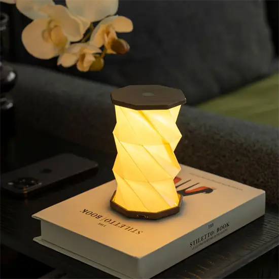 Lampen er fremstillet af ABS og slidstærkt papir, hvilket giver en robust konstruktion. Farven valnøddrift giver et naturligt udtryk, der passer til forskellige indretningsstile. Det heksagonale, snoede design fungerer både som lyskilde og som et skulpturelt element i rummet, hvilket gør den velegnet til dem, der værdsætter form og funktion.