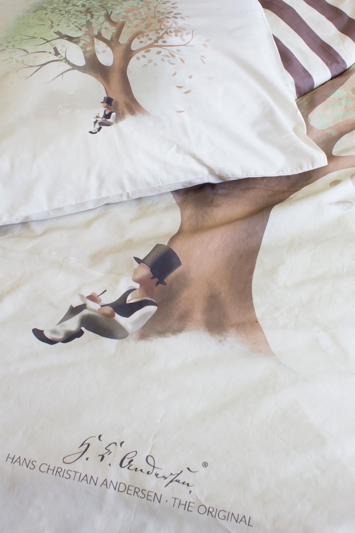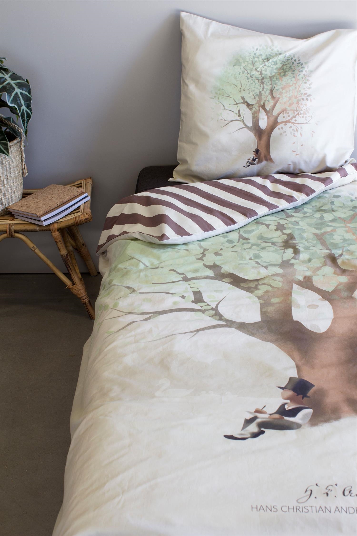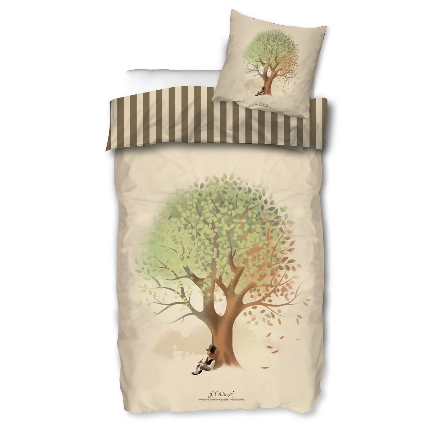 Super fint sengetøj fra H. C. Andersen Original. Sengesættet er fremstillet i økologisk bomuld. Sengetøjet er designet i en smuk beige farve med livets træ på henholdsvis dynebetræk og pudebetræk.