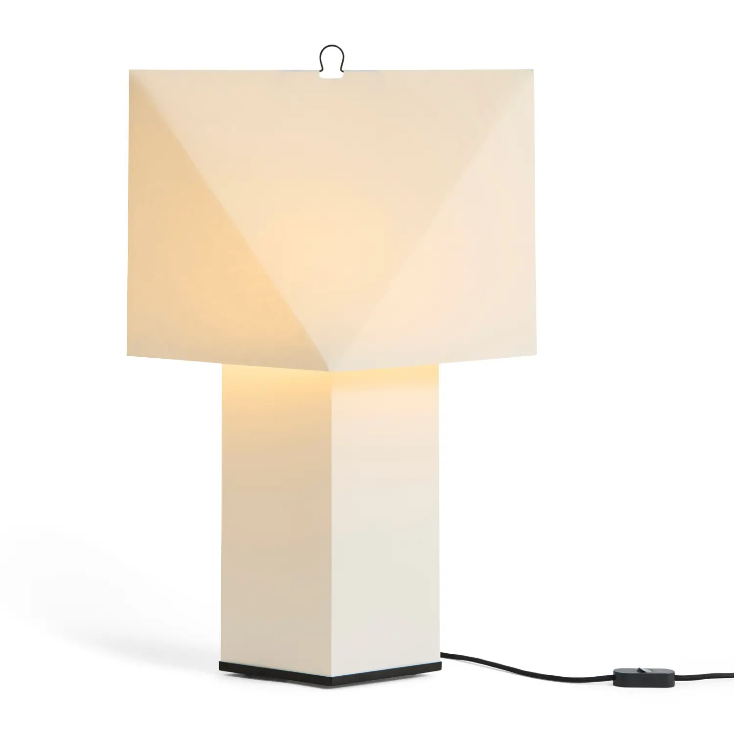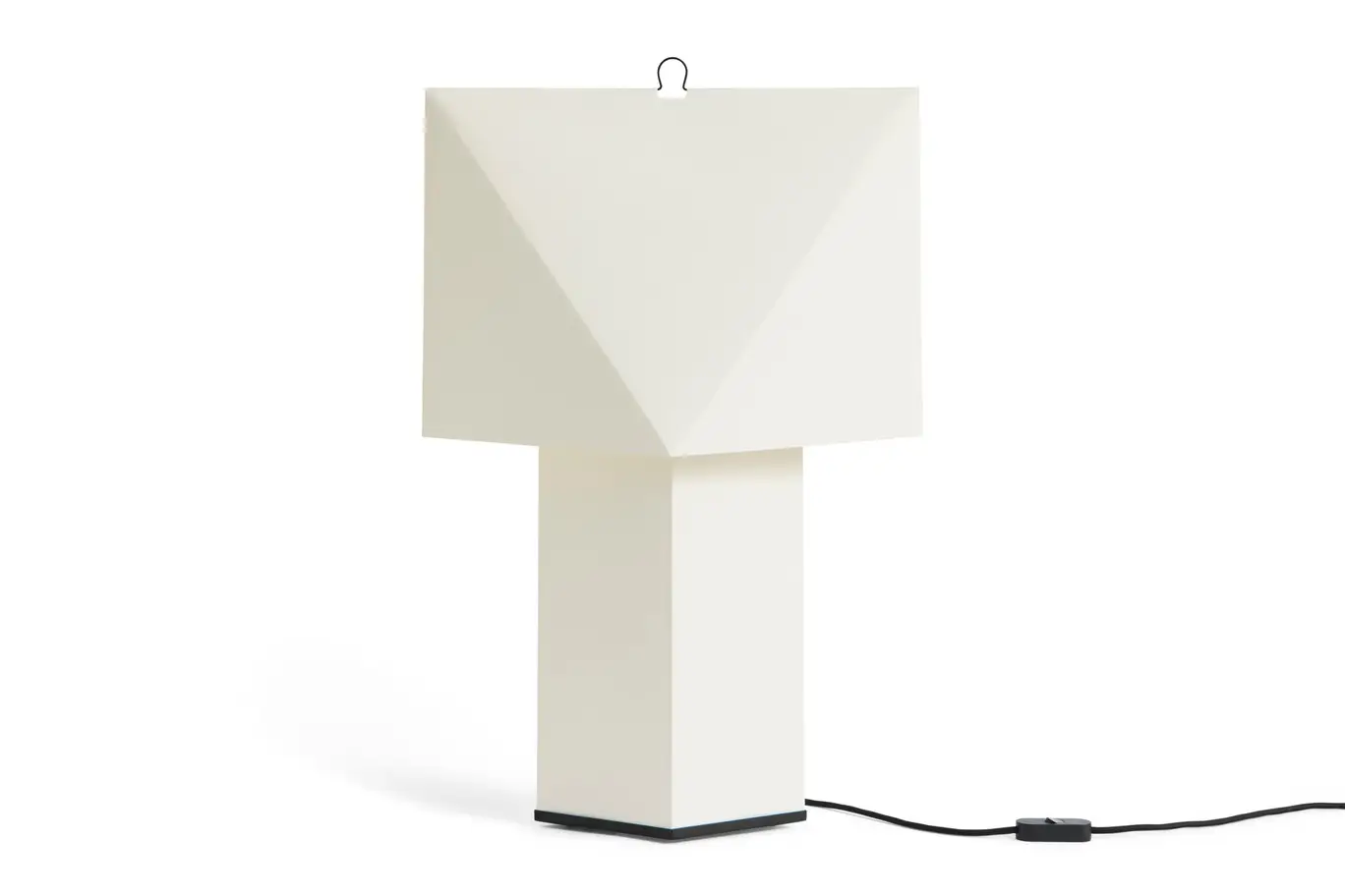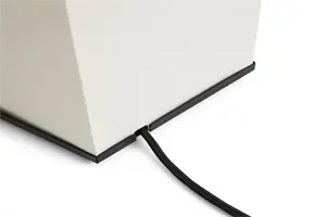 Denne bordlampe fra Hay kombinerer geometrisk design med en hvid/sort farvekombination, der passer ind i både moderne hjem og kontormiljøer. Lampen er fremstillet af metal, silkepapir og maling, hvilket giver en stilfuld konstruktion med en højde på 66 cm.