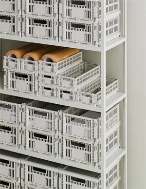 De perforerede sider giver ikke kun et moderne udtryk; de gør også kasserne lette at bære og rengøre. Du kan nemt stable dem sammen med andre Colour Crates for at skabe din egen organiserede opbevaringsløsning.