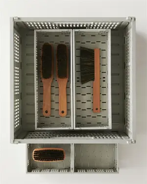 Denne kompakte opbevaringskasse med målene B13 x L34,5 x H8 cm kombinerer praktisk design med gennemtænkt funktionalitet. Det åbne gittermønster sikrer god luftcirkulation og gør det nemt at se indholdet.