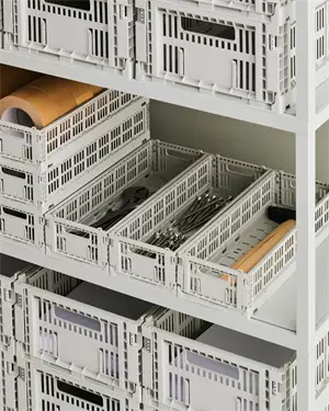 Det åbne design gør det nemt at se og få fat i indholdet. Kassens robuste PP-materiale sikrer holdbarhed i hverdagen, og den grå farve passer naturligt ind i de fleste indretninger. Brug den til alt fra kontorartikler til køkkenredskaber.