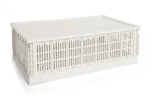 De let hævede kanter sikrer, at låget sidder stabilt på din HAY Colour Crate. Den neutrale off-white farve passer naturligt ind i enhver indretning, mens det flade design gør det nemt at stable flere kasser oven på hinanden.