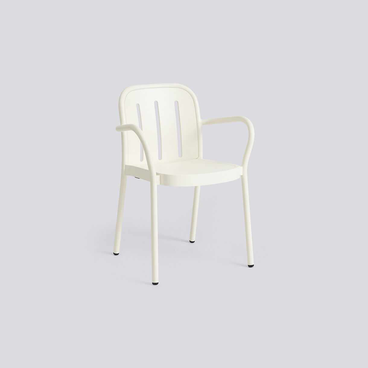 Deville Armchair er designet af Julien Renault og fremstillet af Hay. Den cremehvide farve giver et rent udtryk, der passer ind i mange indretningsstile. Armlænene og de lodrette åbninger i ryglænet skaber både visuel lethed og god siddekomfort.