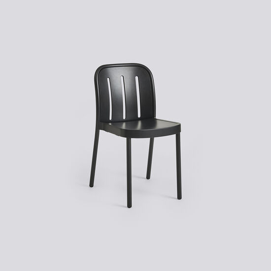 Designet af Julien Renault kombinerer denne stol moderne æstetik med praktisk funktionalitet. Den let buede ryg med tre lodrette slidser giver både et visuelt interessant design og komfortabel støtte til din ryg under lange sammenkomster.