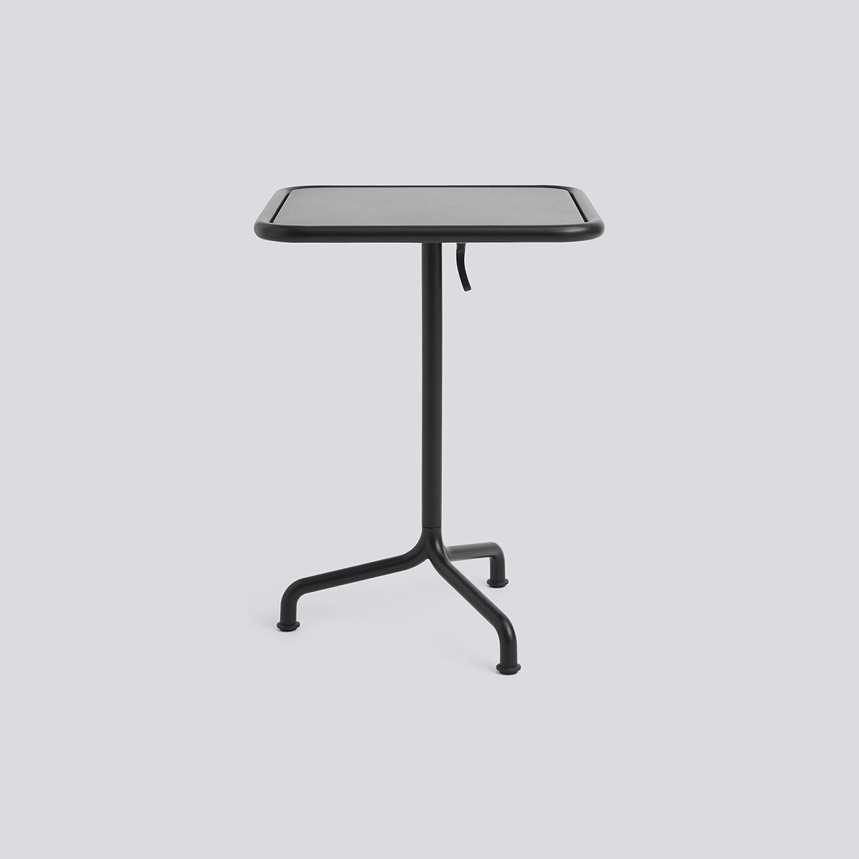 Dette cafébord fra Hay kombinerer funktionalitet med et minimalistisk udtryk. Rammen er fremstillet i antracitpulverlakeret aluminium, hvilket gør bordet let at flytte rundt i haven eller på terrassen, samtidig med at materialet modstår korrosion og vejrpåvirkninger over tid.