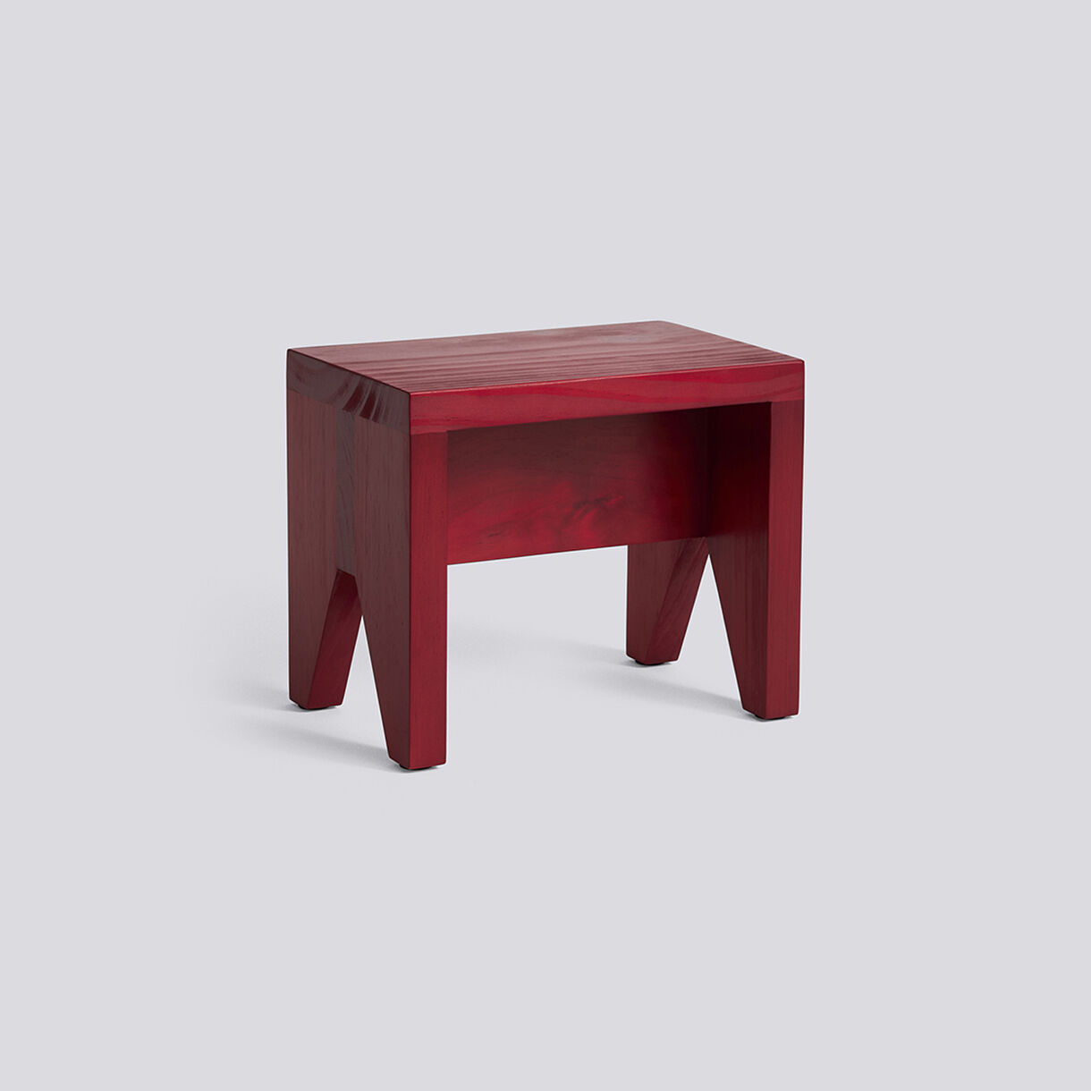 Denne korte skammel fra Hay kombinerer et rektangulært design med en glat overflade i en markant rød farve. Den er lavet af fyrretræ med stabile ben, der sikrer en solid base. Dimensionerne er B20 x L30 x H25 cm.