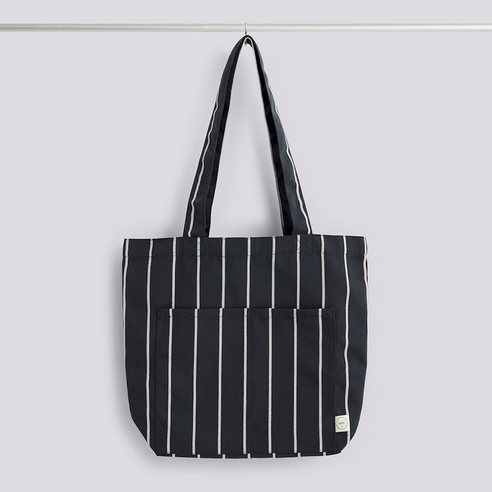 Hay - Outdoor Market Tote Bag-Medium-Black with beige stripe