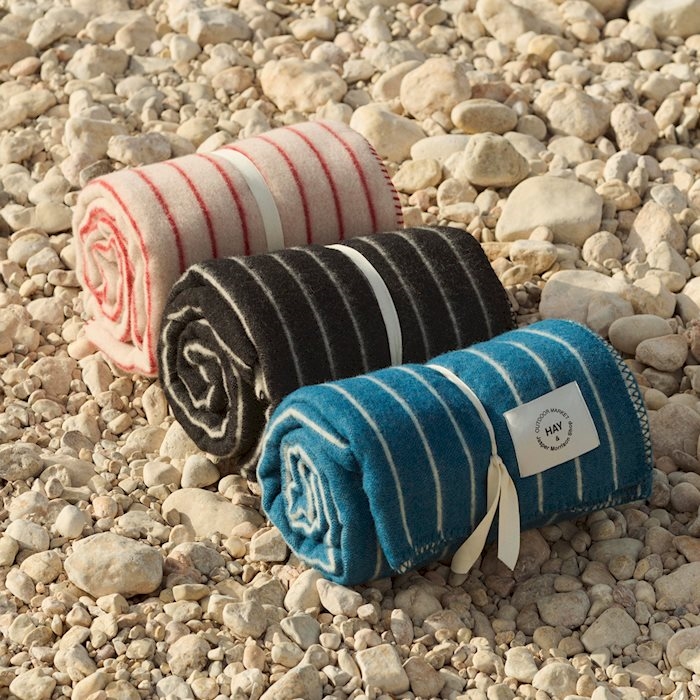 Hay - Outdoor Market Throw - W130 x L180 - blå med beige striber