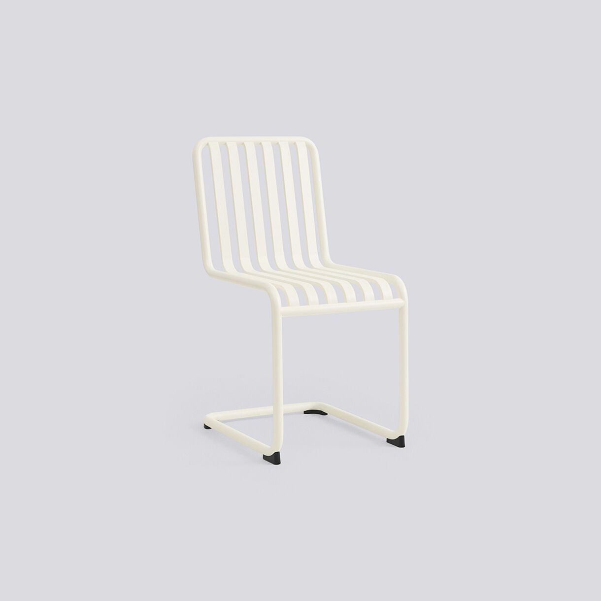 Denne stol kombinerer moderne cantilever-design med en robust stålkonstruktion. Materialet er stål med pulverlakeret overflade, hvilket gør stolen vejrbestandig og nem at vedligeholde. Det slatted design på sæde og ryg giver både luftgennemstrømning og visuel lethed i din haveindretning.