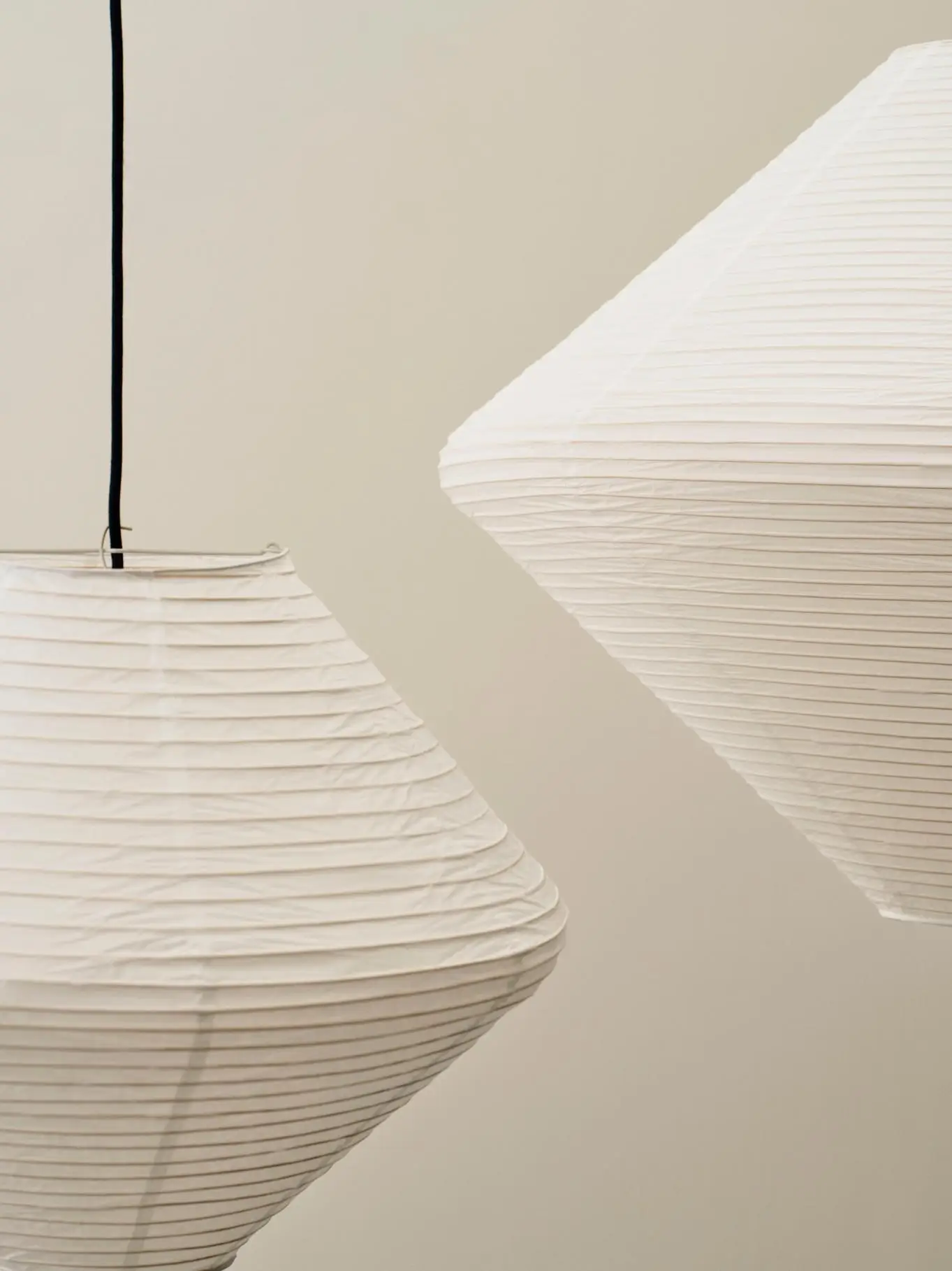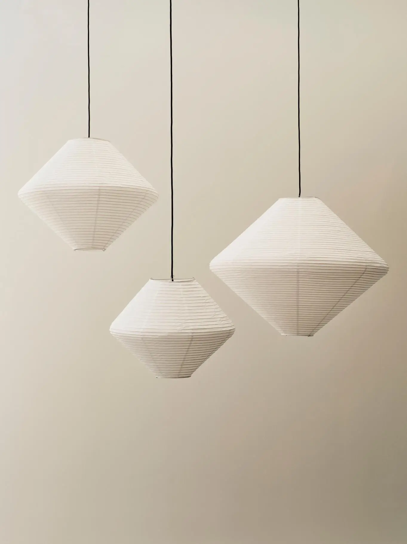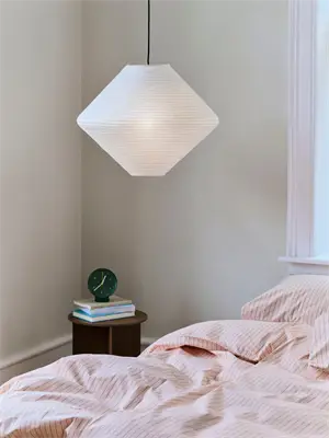 Hay's Paper Shade Diamond er fremstillet med omhu for detaljerne. Den foldede struktur giver skærmen karakter, mens kombinationen af papir og bambus sikrer en let konstruktion. Sort ledning medfølger for en gennemført finish.