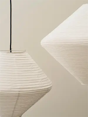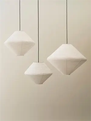 Denne håndlavede lampeskærm kombinerer papir og bambus i lige store dele, hvilket giver en let og holdbar konstruktion. Den diamantformede struktur skaber et behageligt lysspil, mens de naturlige materialer tilfører dit rum en rolig atmosfære.