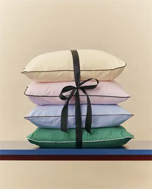 Dette pudebetræk fra Hay kombinerer høj trådtæthed med Oeko-Tex-certificeret bomuld. Det giver en blød og behagelig overflade, der holder sig vask efter vask. Brune kontrastkanter tilfører et diskret designelement til den rolige lavendelnuance.