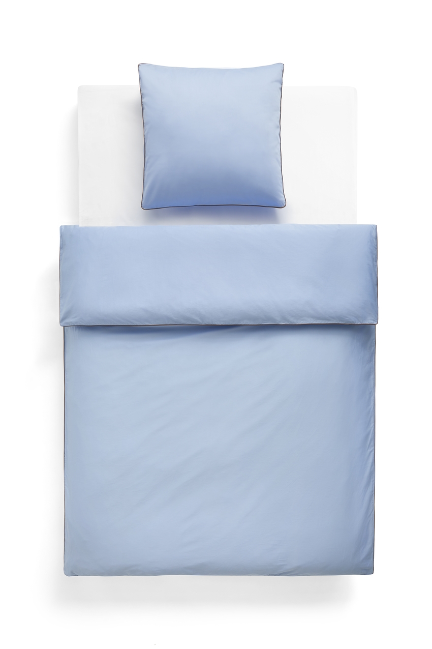 Den lyse blå farve skaber en rolig stemning i dit soveværelse. Kontrastkanterne tilføjer et stilrent touch, der passer til forskellige indretningsstile. Med Oeko-Tex-certificeringen kan du sove trygt, velvidende at pudebetrækket er frit for skadelige stoffer.