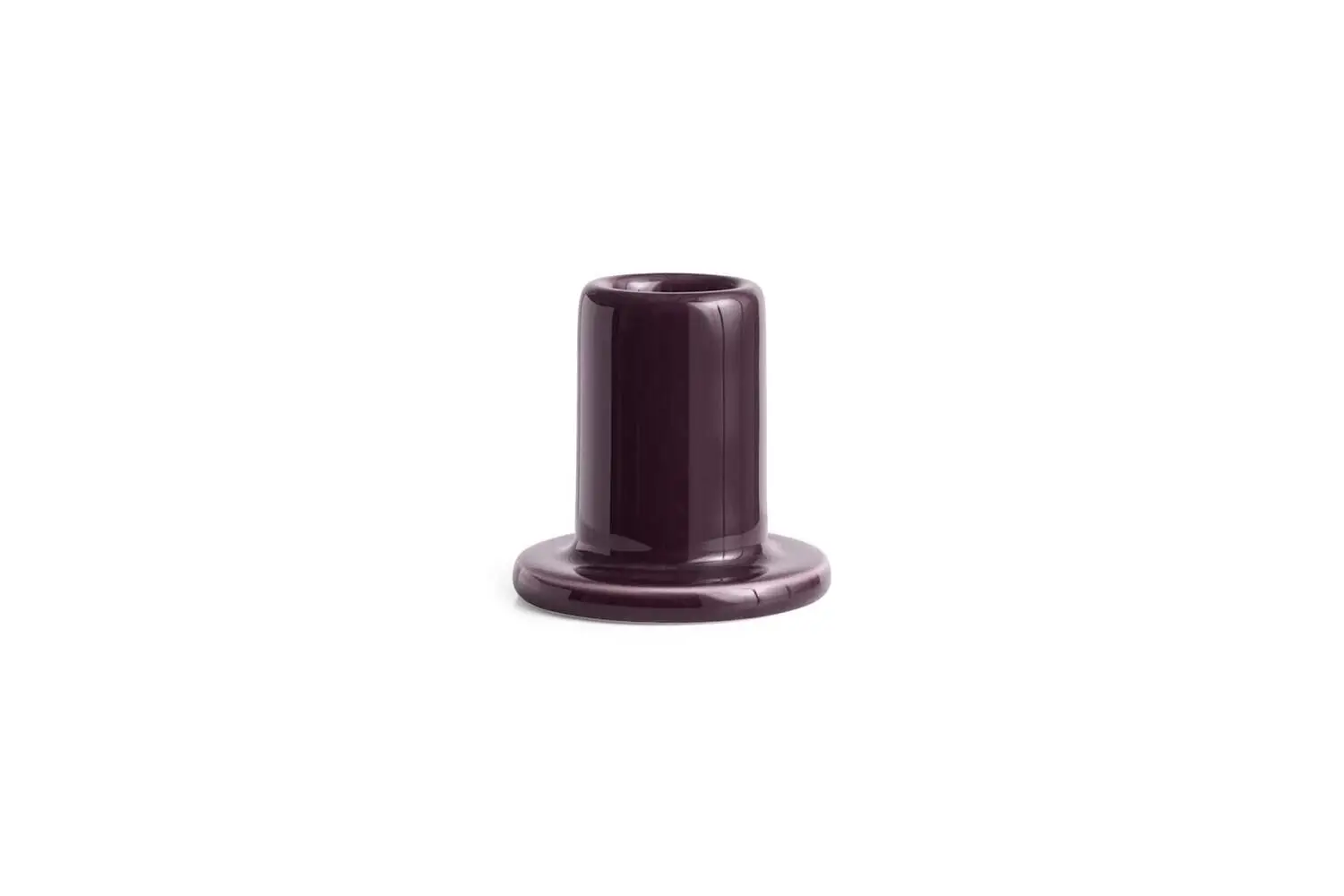Denne cylindriske lysestage fra Hay er fremstillet i holdbar keramik med en blank overflade. Den bordeauxfarvede stage måler Ø5,5 x H5,5 cm og passer til standardlys. Den stabile, runde base sikrer god stabilitet.