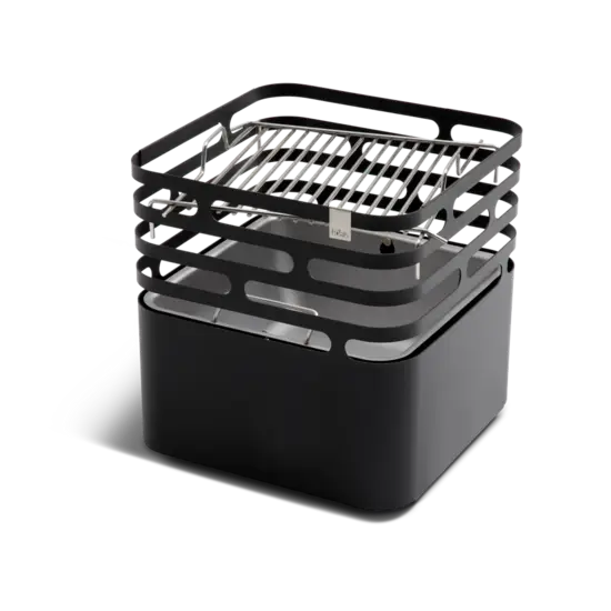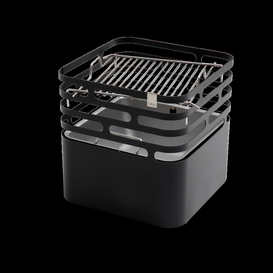 Massiv grill i rustfrit stål Kan placeres i forskellige højder i CUBE-fordybningerne for at regulere temperaturen Indbyggede håndtag for nem og sikker håndtering