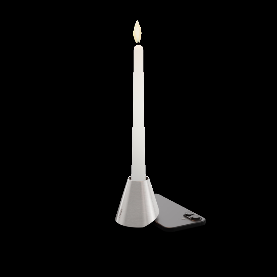 Lysestage til fælles øjeblikke uden digitale distraktioner. Velegnet til standard koniske og koniske lys med en diameter på 20-24 mm. Retter sig op, så snart en smartphone placeres under. Holder en eller to smartphones – selv med etuier. Stabil stativ: vælter ikke, selv ved vibrationer. Skridsikker silikonebund beskytter sarte overflader. Aftagelig voksbakke opfanger dryppende voks og er nem at rengøre. Ideel gave og en charmerende invitation til mere øjenkontakt. Bemærk: Kun lys af høj kvalitet bør anvendes for at forhindre utilsigtet lækage fra lyset. Kun koniske lys op til 25 cm lange og koniske lys op til 30 cm lange må anvendes. Må ikke udsættes for vejret permanent. Må ikke kommes i opvaskemaskinen, men rengøres i hånden.
