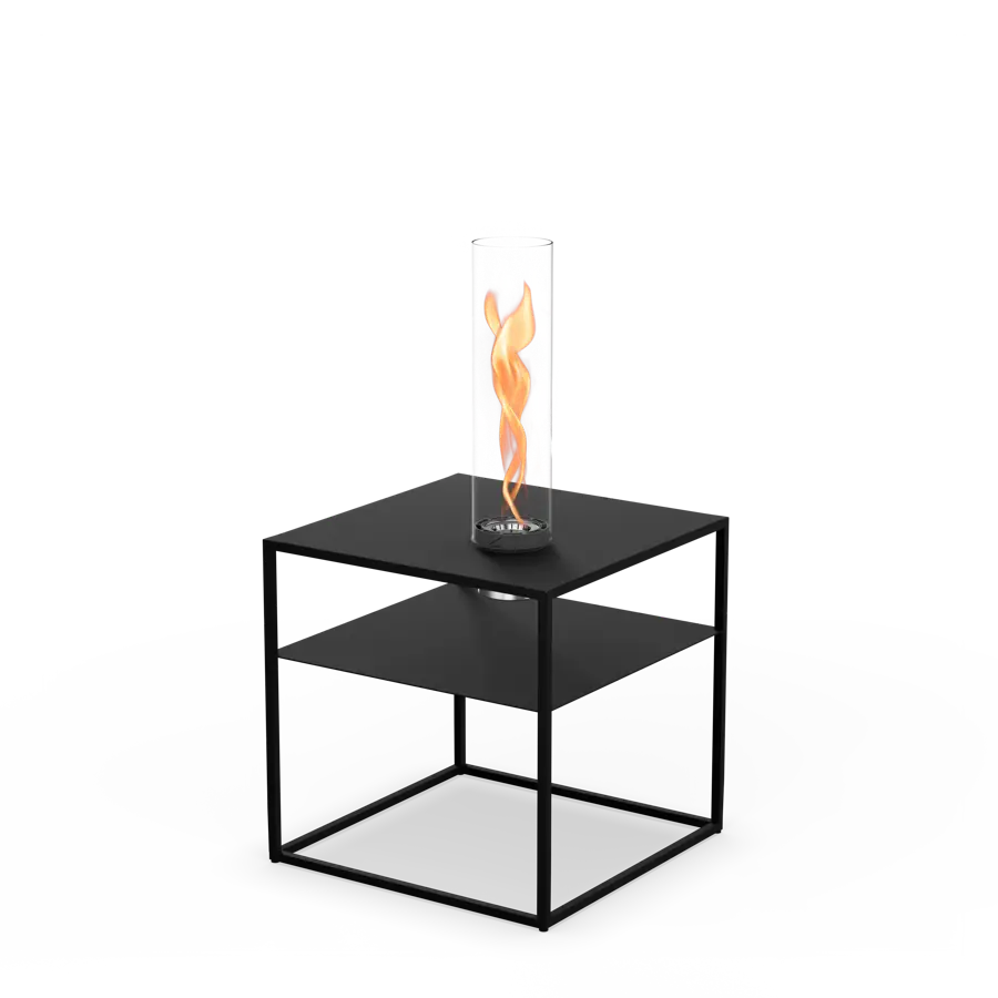 Sættet består af FIRE FRAME Lounge-bordet med SPIN air 1200 indbygget FIRE FRAME Lounge-bordMultifunktionelt loungebord i et klart kubisk designHøjkvalitets stålkonstruktion med pulverlakeret, mat sort finishTo opbevaringsniveauer til drikkevarer, bøger eller tilbehørIntegreret åbning med låg (diameter 10 cm) til SPIN air 1200 installationVelegnet til indendørs og udendørs brugVærktøjsfri montering og nem SPIN-integration for fleksibel brugSPIN air 1200 indbygget sortMultiprisvindende bordpejs i indbygget version for kreative designmulighederVelegnet til installation i genstande med en udskæringsdiameter på 102-103 mmPatenteret biobrænder med innovativ brænderteknologiTydligt struktureret og synlig flamme, selv i dagslysBrændetid 100-150 min med ca. 500 ml höfats bioethanol flydende brændstof. Brændetiden kan forlænges med 50 % med Eco-Ring. Afgiver behagelig varme: op til 2000 W. Sikker til indendørs brug, laboratorietestet og certificeret i henhold til DIN EN 16647. Genopfyldning med flydende brændstof via sikkerhedsventilen på biobrænderen. Lugtfri, sod- og røgfri takket være biologisk höfats bioethanol flydende brændstof. Leveringsomfang: ILDRAMME, SPIN luftvinge med sikkerhedsbeholder, biobrænder med Eco-Ring og slukningslåg, glascylinder. Bemærk venligst: SPIN air må kun anvendes med hø bioethanol flydende brændstof. Vores økologiske hø bioethanol er ikke inkluderet i leveringen. SPIN air er ikke godkendt til kontinuerlig opvarmning.