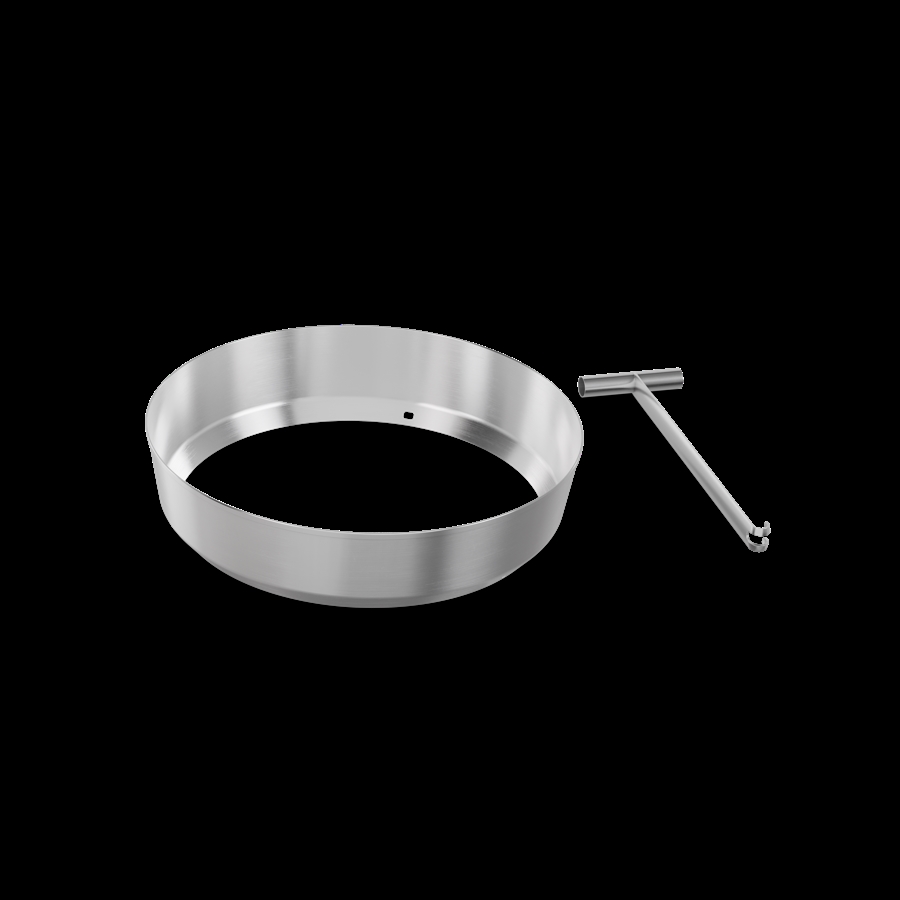 Forlænger den røgfri MOON-pejs med træpiller. Muliggør nem fjernelse, tømning og genopfyldning af MOON-askebægeret. Robust rustfri stålring til fastgørelse på askebægeret med tre skruer. Kan bruges med træpiller eller brænde. Leveringsomfang: MOON Forlængerring, MOON Lifter. Materiale: børstet rustfrit stål (ring) og rustfrit stål (løfter).