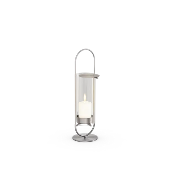 Lysestage og lanterne til både at stå og hænge. Velegnet til stearinlys med en diameter på 50 mm og en maksimal længde på 10 cm. Specielt designet lysholder med 3 stifter. Aftagelig voksopsamlingsbakke under lyset sikrer sikker brænding og nem rengøring. Base til at placere OVAL CANDLE på bordet. Ophængning af OVAL CANDLE mulig takket være varmebestandig aramidsnor: snorens længde kan justeres fleksibelt. Låg med silikonehåndtag: Når den er halvt åben, forhindres ophænget i at blive varmt fra det brændende lys og slukker lyset, når glascylinderen er helt dækket. Nem at samle uden værktøj. Kan rengøres i opvaskemaskine. Stel og base: matbørstet rustfrit stål. Glascylinder: borosilikatglas af høj kvalitet. Leveringsomfang: Ovalt lys 35, base, aramidsnor. Ekstra tilbehør: vægbeslag.