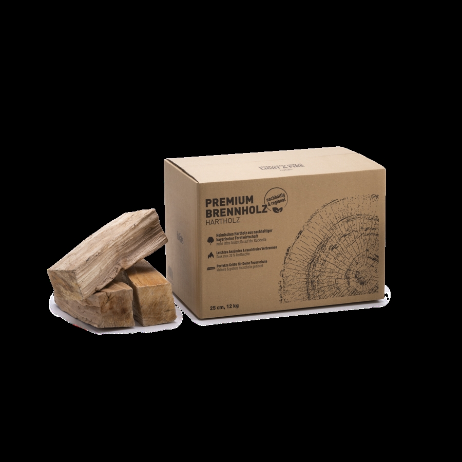 The 12kg box contains a blend of smaller and larger hardwood logs, giving you flexibility depending on your fire setup. Smaller pieces work well for getting started, while larger logs maintain the fire longer. This variety makes the firewood adaptable whether you're heating a room or creating ambiance outdoors.