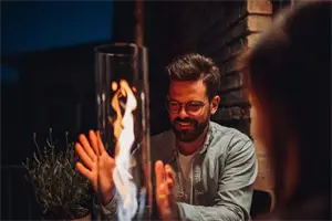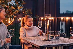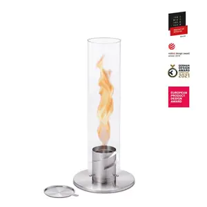 Bordpejs med mulighed for forlængelse til lanterne, havefakkel eller hængeovn. Prisvindende design. 500% flammeboost: roterende flamme og skorstenseffekt. Udstråler behagelig varme: 2500 W ved brug af SPIN 120. Sikker brug også indendørs, certificeret af et laboratorium til indendørs brug i henhold til DIN EN 16647. Må kun anvendes med bioethanol-gelbrændstof fra høfedt. Lugtfri, sodfri og røgfri takket være økologisk høfedt-bioethanol-gelbrændstof. Brændetid SPIN 120 ca. 80 min. med ca. 500 ml höfats bioethanol-brændingsgel. Leveringsomfang: fod, vingehus, gelbrændstofkop, glascylinder, slukningslåg. Eftermontering af Bio-Burner 1200 mulig. Bemærk: SPIN 120 må kun anvendes med bioethanol-gelbrændstof fra höfats. Vores økologiske höfats bioethanol-gelbrændstof er ikke inkluderet i leveringen. SPIN er ikke tilladt som varmelegeme i permanent brug!