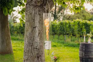 Hvis du mangler plads til en bordpejs, eller hvis du ønsker at frigøre bordplads, giver dette hængesystem dig en løsning. Systemet løfter pejsen op fra gulvet, hvilket betyder, at du kan udnytte rummet under til andre formål, samtidig med at flammen stadig er synlig.