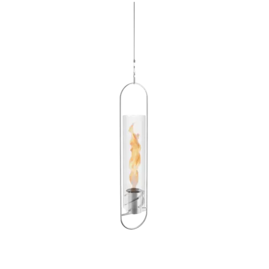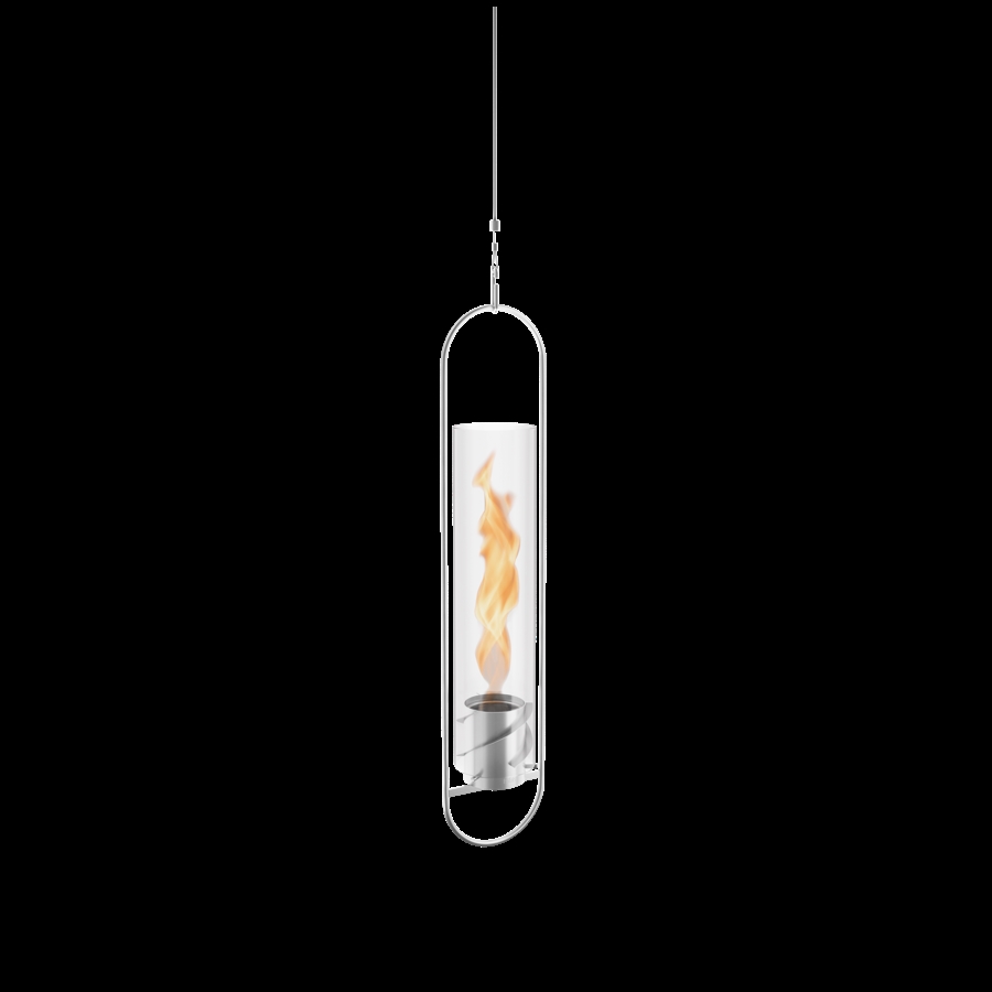Hængende pejs med valgfri forlængelse til en bordpejs, lanterne eller havefakkel. Prisvindende design. 500% flammeboost: roterende flamme og skorstenseffekt. Udstråler behagelig varme: 1200 W ved hjælp af SPIN 90. Højdejusterbar takket være fin rustfri ståltråd. Sikker brug også indendørs, certificeret af et laboratorium til indendørs brug i overensstemmelse med DIN EN 16647. Lugtfri og røgfri takket være økologisk høbioethanol. Brændetid SPIN 90 ca. 60 min. med ca. 225 ml höfats bioethanol brændegel. Leveringsomfang: ophængningssystem, vingehus, gelbrændstofkop, glascylinder, slukningslåg. Bemærk venligst: SPIN hængepejsen fås i øjeblikket kun i sølv. SPIN 90 kan kun betjenes med bioethanolgelbrændstof. Vores økologiske höfats bioethanolgelbrændstof er ikke inkluderet i leveringen. Kun det medfølgende slukningslåg må bruges til at slukke flammen. SPIN er ikke tilladt som varmelegeme i permanent brug.