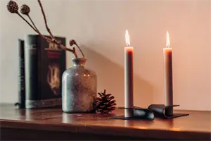 Hvis du har oplevet, at lys vipper eller falder, giver de to støttestifter den sikkerhed, du søger. De holder stearinlyset fast, selv når du flytter lysestagen. Brug kun stearinlys af høj kvalitet for at undgå lækager, der kan påvirke både lysestagen og dit bord.