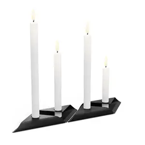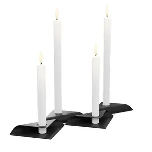 Dette sæt indeholder fire sorte lysestager, hver med plads til ét stearinlys. Hver lysestage har to støttestifter, der holder lyset stabilt på plads under brug. Sættet giver dig fleksibilitet til at arrangere lysene efter dine ønsker i dit hjem.
