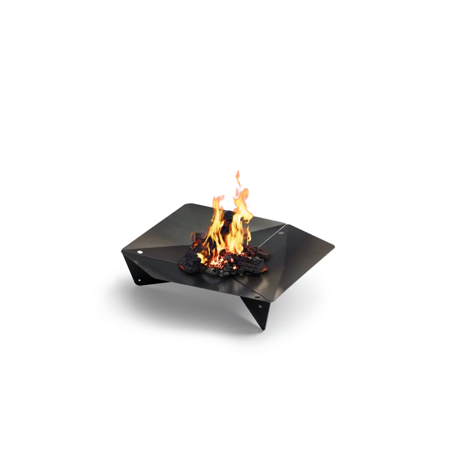 Modulær bålskål med udvidelig grillfunktion Kan skilles ad i tre kompakte dele til transport Kan også bruges som grill med TRIPLE Grill 45 | 55 og TRIPLE Bord (tilbehør) Maksimalt tre TRIPLE Stænger til grillriste og borde kan monteres Bålskålen kan hæves med fødder (tilbehør) 2 mm cortenstål: udvikler en unik, beskyttende rustpatina over tid