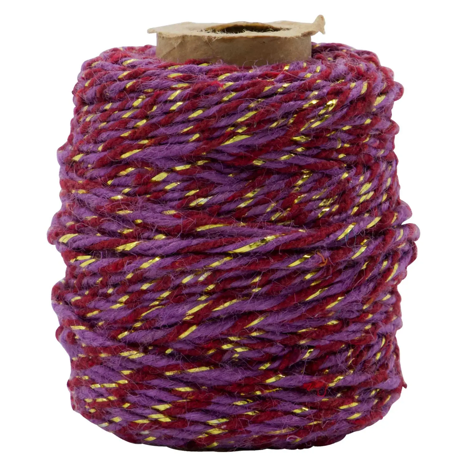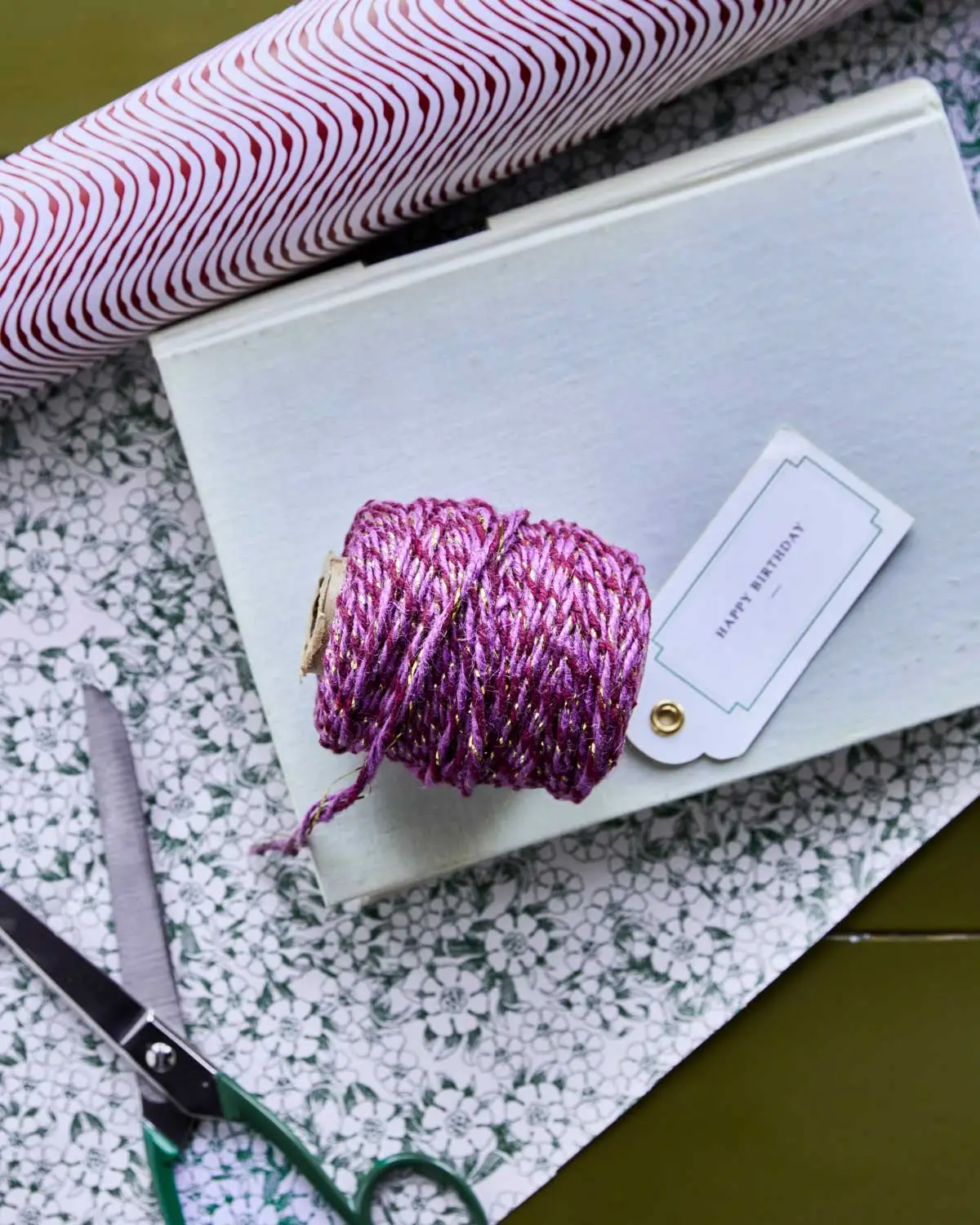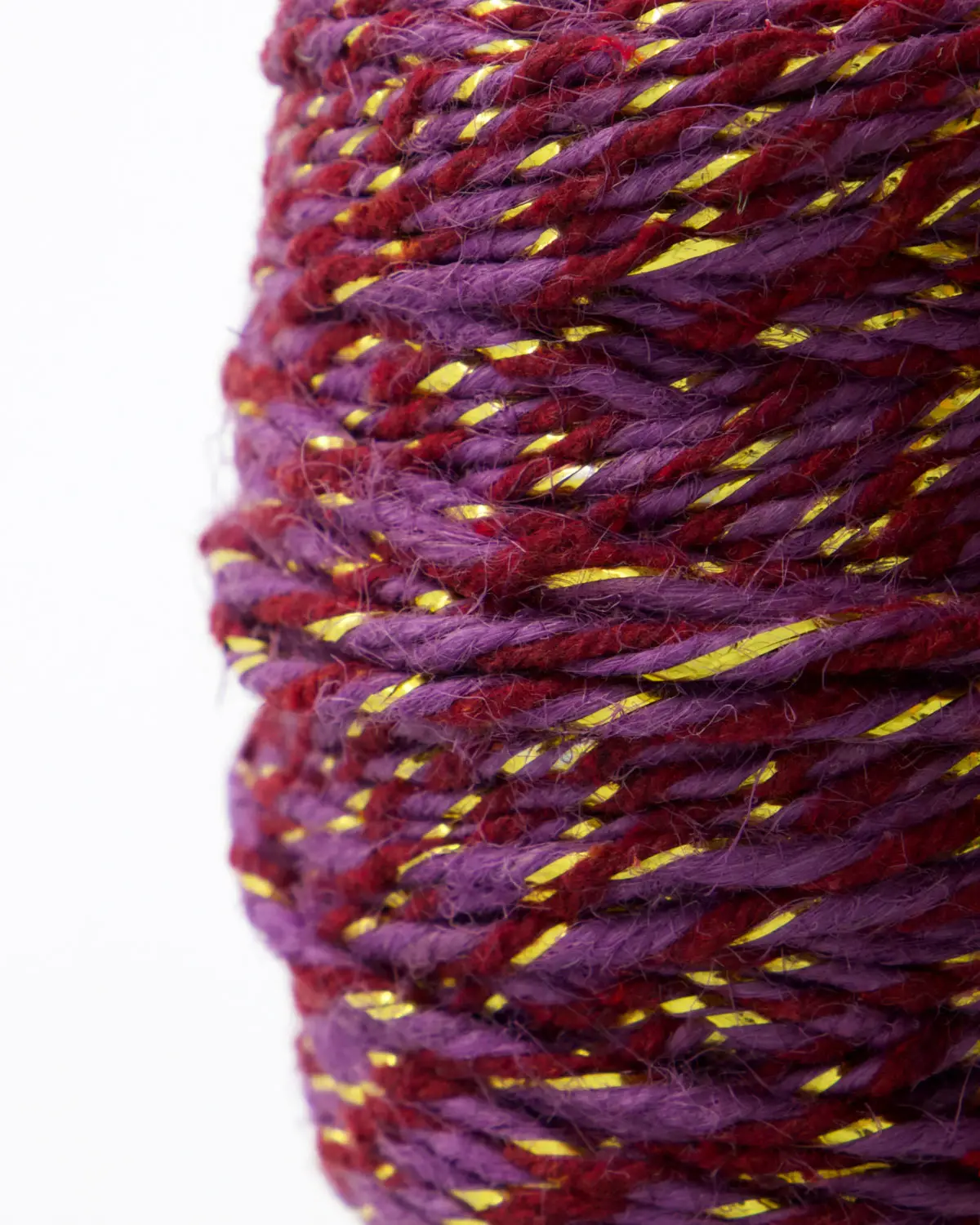 Dette bånd fra House Doctor bringer lilla, røde og gyldne tråde sammen i en farvesammensætning, der tilføjer et iøjnefaldende udtryk til din gaveindpakning. Den snoede tekstur giver båndet en håndlavet karakter, der skiller sig ud fra glatte, industrielle alternativer.