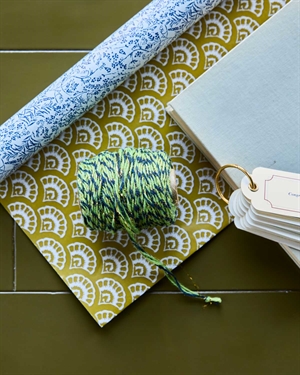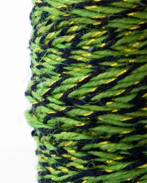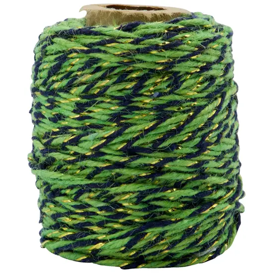 Dette grønne bånd fra House Doctor har en snoet struktur, der giver det ekstra holdbarhed til dine dekorative projekter. Materialet består af 60 % jute, 30 % bomuld og 10 % lurex, hvilket skaber en naturlig tekstur med diskrete guldglimt, der fanger lyset.