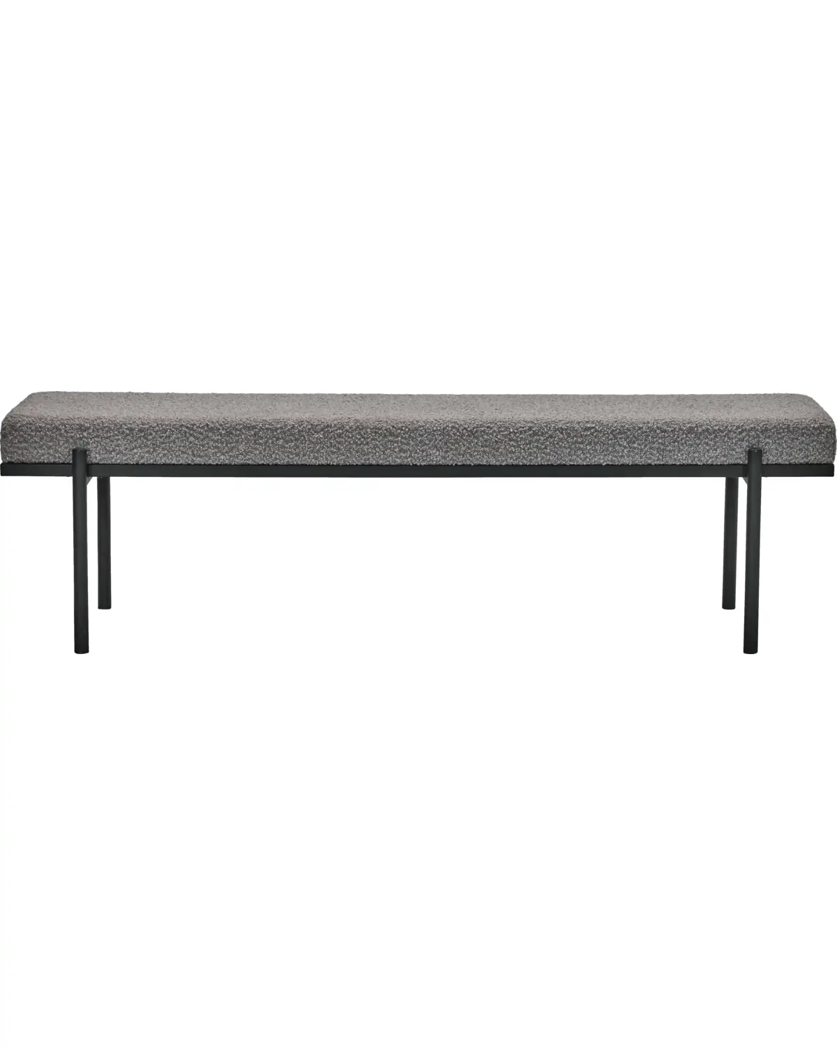 Oplev den perfekte blanding af stil og funktionalitet med denne elegante bænk. Sædet, der er pakket ind i rigt brunt bouclé-stof, giver et sofistikeret touch til ethvert miljø. Det slanke sorte stålstel giver robust støtte og en moderne æstetik. Denne alsidige bænk passer perfekt for enden af en seng, i en entré eller som siddeplads ved spisebordet, hvilket gør den til en uundværlig tilføjelse til din indretning.- Rigt brunt bouclé-stof.- Elegant sort stålramme.- Alsidigt og tidløst design.- Perfekt til forskellige rum.Tilføj et strejf af elegance til dit hjem med denne sofistikerede bænk.