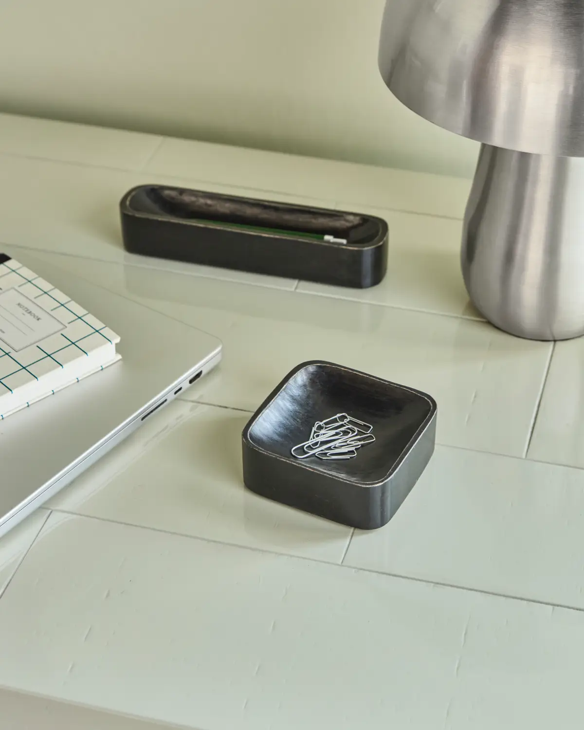 HDAlma-bakken fra House Doctor er lavet af massivt mangotræ med en dyb, matsort finish. Det udskårne og afrundede design holder styr på småting og uundværlige hverdagsnips.- Fremstillet af mangotræ.- Matsort finish.- Mål: 10 x 10 cm.