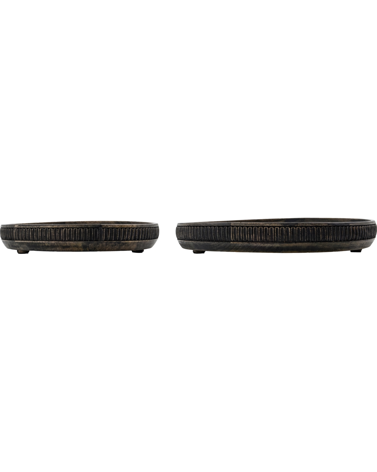 Skab varme og stemning med to runde bakker i sortbejdset, håndlavet mangotræ. Perfekte til både servering og dekoration – sæt dem på spisebordet eller i entréen med lysestager og blomster for at skabe et hyggeligt udtryk.- Håndlavet mangotræ- Rustik sort finish- Sæt med 2 bakker- Giver hygge i hjemmetSæt dit personlige præg, og indret med naturlig charme og alsidighed.