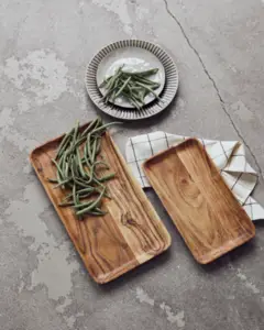 Disse serveringsfade er lavet af naturligt akacietræ og er indbegrebet af elegance og funktionalitet. Deres varme toner og unikke kornmønstre tilføjer et strejf af natur til dit spisebord, hvilket gør dem perfekte til at fremvise dine kulinariske kreationer. Med to størrelser i sættet har du mange muligheder for at servere forretter, hovedretter eller desserter. Lad deres underspillede skønhed supplere din spiseoplevelse og tilføje et raffineret touch til enhver lejlighed.- Fremstillet af eksklusivt akacietræ- Indeholder to alsidige størrelser- Ideel til servering og udstilling- Forbedrer enhver borddækningGiv dit bord en naturlig charme med disse smukke serveringsfade.