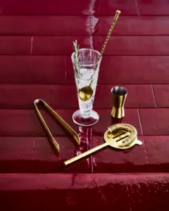 Skab stemning i din hjemmebar med dette sæt barredskaber i elegant antik messingfinish. Funktion og vintage-æstetik går hånd i hånd, når du mixer drinks til venner eller sætter prikken over i’et til en hyggelig aften. Sættet indeholder alt det nødvendige: målebæger, si, røreske og istang. Perfekt som gaveidé, til cocktailselskabet, eller når du bare vil forkæle dig selv med et stilsikkert tilbehørssæt.- Sæt med 4 dele til cocktails.- Rustfrit stål.- Finish kan variere.- Kombinerer funktion og stil.Løft din hjemmebar, og skab festlige øjeblikke med tidløst design.