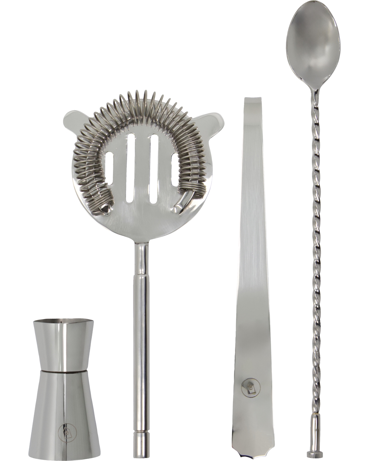 Fuldend din hjemmebar med et stilfuldt sæt i sølvfinish, der kombinerer funktionalitet og æstetik. Sættet indeholder målebæger, si, rørepind og isterningetang – alt, hvad du behøver for at mixe elegante cocktails til dine gæster eller en hyggelig aften hjemme.- Indeholder 4 barredskaber- Elegant sølvfinish- Fremstillet i rustfrit stål- Perfekt til hjemmebarenGiv din cocktailoplevelse et løft med et design, der skaber stemning og stil.