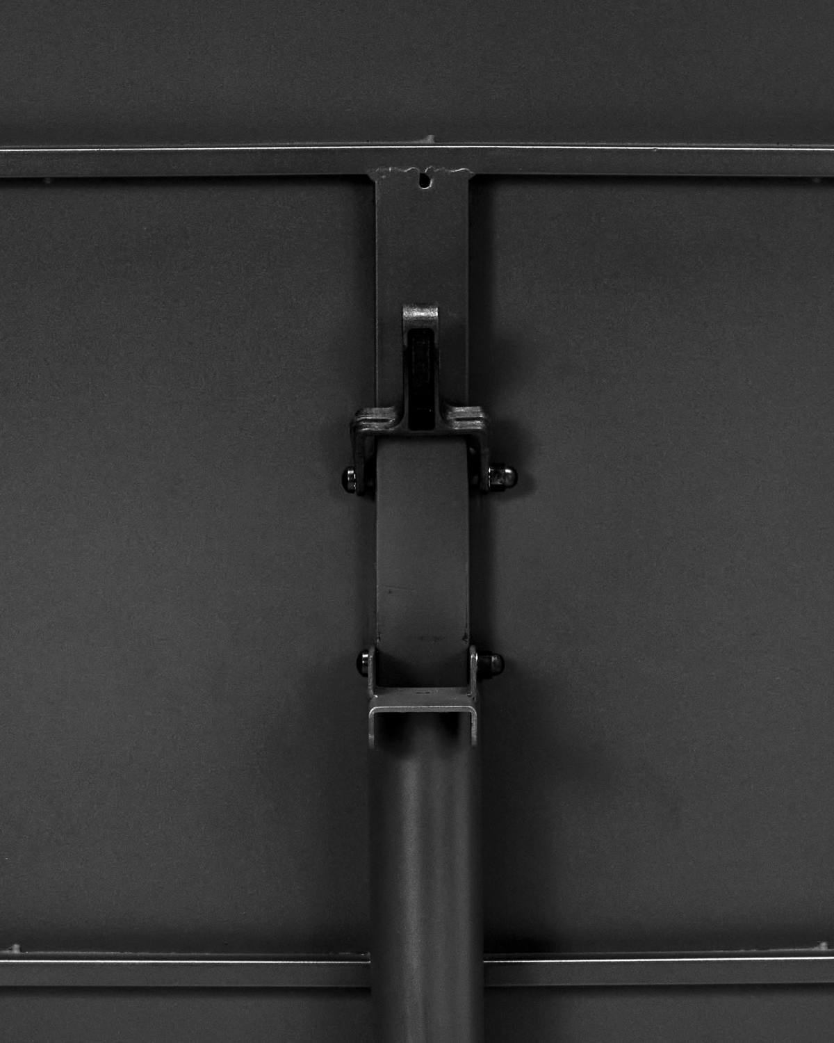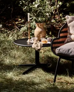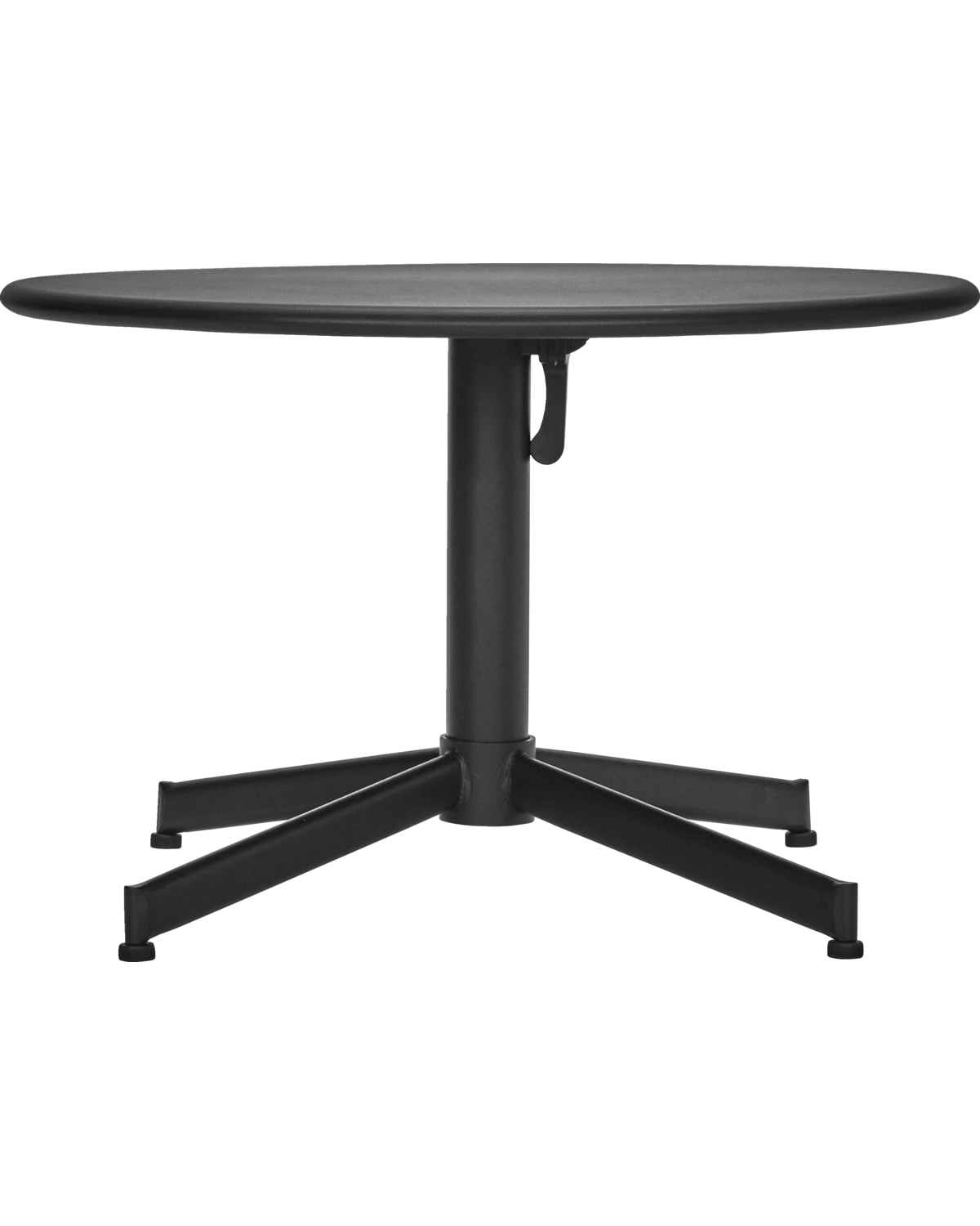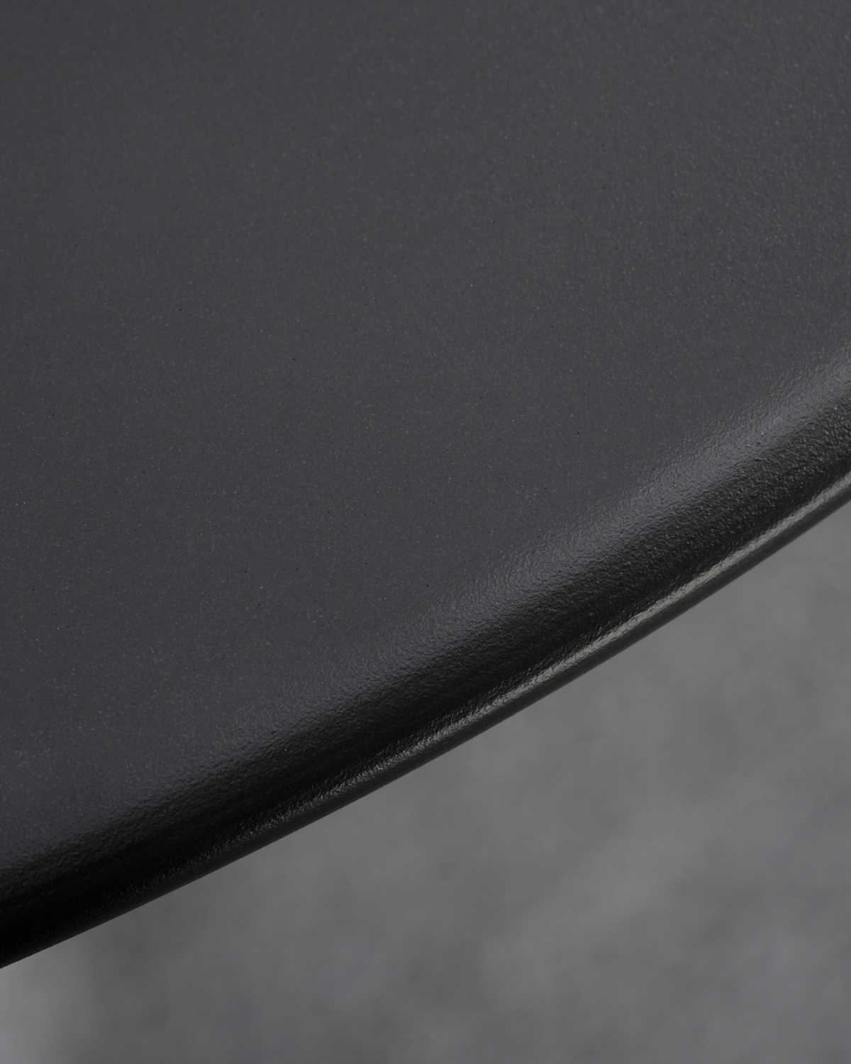 Skab et indbydende udendørs miljø med dette runde, sorte sofabord. Dets slanke jernkonstruktion med en matsort pulverlakering sikrer stil og holdbarhed. Det tidløse design er perfekt til enhver balkon eller terrasse og passer perfekt ind i forskellige indretningsstile. Bordets praktiske vipbare bordplade gør, at du nemt kan flytte det til forskellige steder, hvilket sikrer fleksibilitet til din udendørs nydelse.- Tidløst design i sort jern- Fleksibel, vipbar bordplade- Ideel til altaner og terrasser- Nem montering påkrævetTilføj dette alsidige bord til dit uderum for at få et stilfuldt og funktionelt touch.