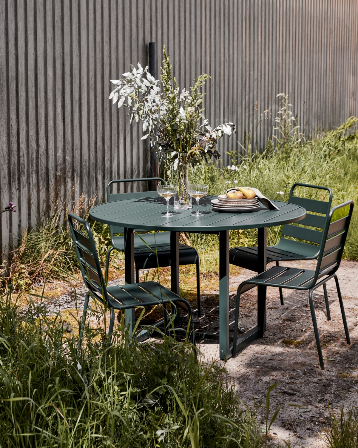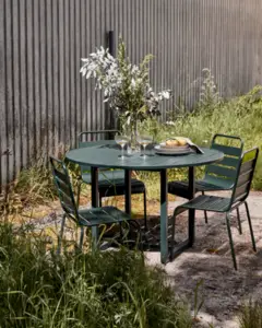 Dette runde bord er en tidløs tilføjelse til dit uderum og er sofistikeret med sin stilfulde mørkegrønne finish. Det er designet til at skabe en indbydende atmosfære og opfordrer til inkluderende samtaler, hvilket gør det perfekt til sammenkomster. Den matgrønne pulverlakering er ikke kun med til at gøre bordet flot, men sikrer også en lang holdbarhed. Sæt dette elegante bord sammen med komplementære stole i sort eller grøn fra samme serie for at få et harmonisk og stilfuldt look. - Tidløst mørkegrønt design - Inkluderende rund bordform - Holdbar, mat finish - Perfekt til udendørs omgivelser Løft dine udendørs sammenkomster med dette elegante og funktionelle bord