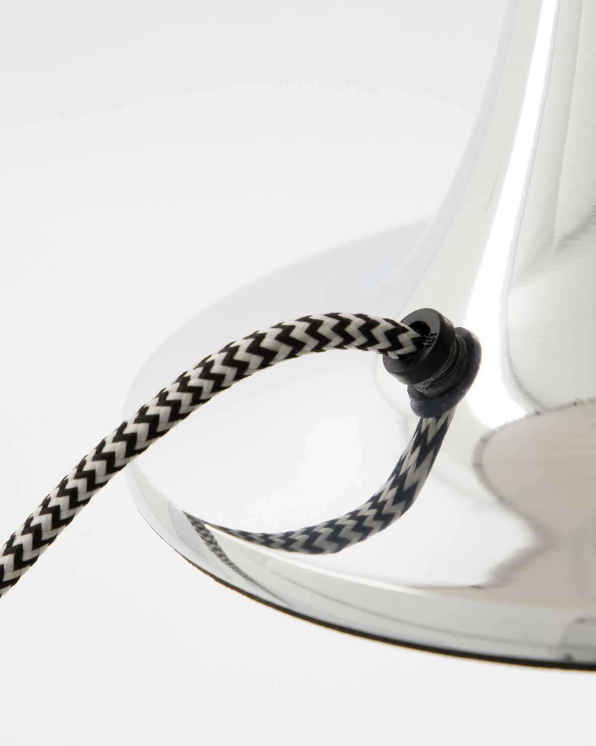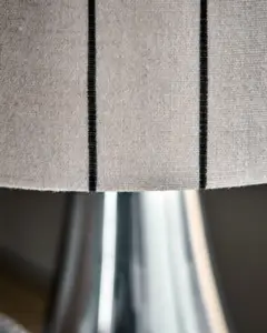 Lad en elegant bordlampe i sølvfinish løfte stemningen med sin tulipanformede fod og diskrete stribede stofskærm. Designets kontrast giver personlighed og kant, uanset om du placerer lampen på skrivebordet, i stuen eller som blikfang på natbordet. Skab et indbydende hjørne alene, eller lad lampen afbalancere dine øvrige indretningselementer for at skabe et moderne udtryk.- Unik tulipanformet base- Lækker sølvfinish i aluminium- Stribet og blød lampeskærm- Skaber personlig stemningLad lampen lyse op, og skab et moderne, indbydende udtryk overalt i hjemmet.