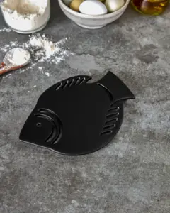 Denne bordskåner er fremstillet af holdbart aluminium med en elegant sort finish og giver funktionalitet og charme til dit spisebord. Designet i den finurlige form af en fisk giver den et legende touch, samtidig med at den beskytter dine overflader mod varme retter og gryder. Dens æstetiske og praktiske design tilføjer et hyggeligt element til din spiseoplevelse.- Fiskeformet design- Holdbar konstruktion i aluminium- Giver beskyttelse af bordet- Elegant sort finishInkorporer stil og beskyttelse i din spiseplads.