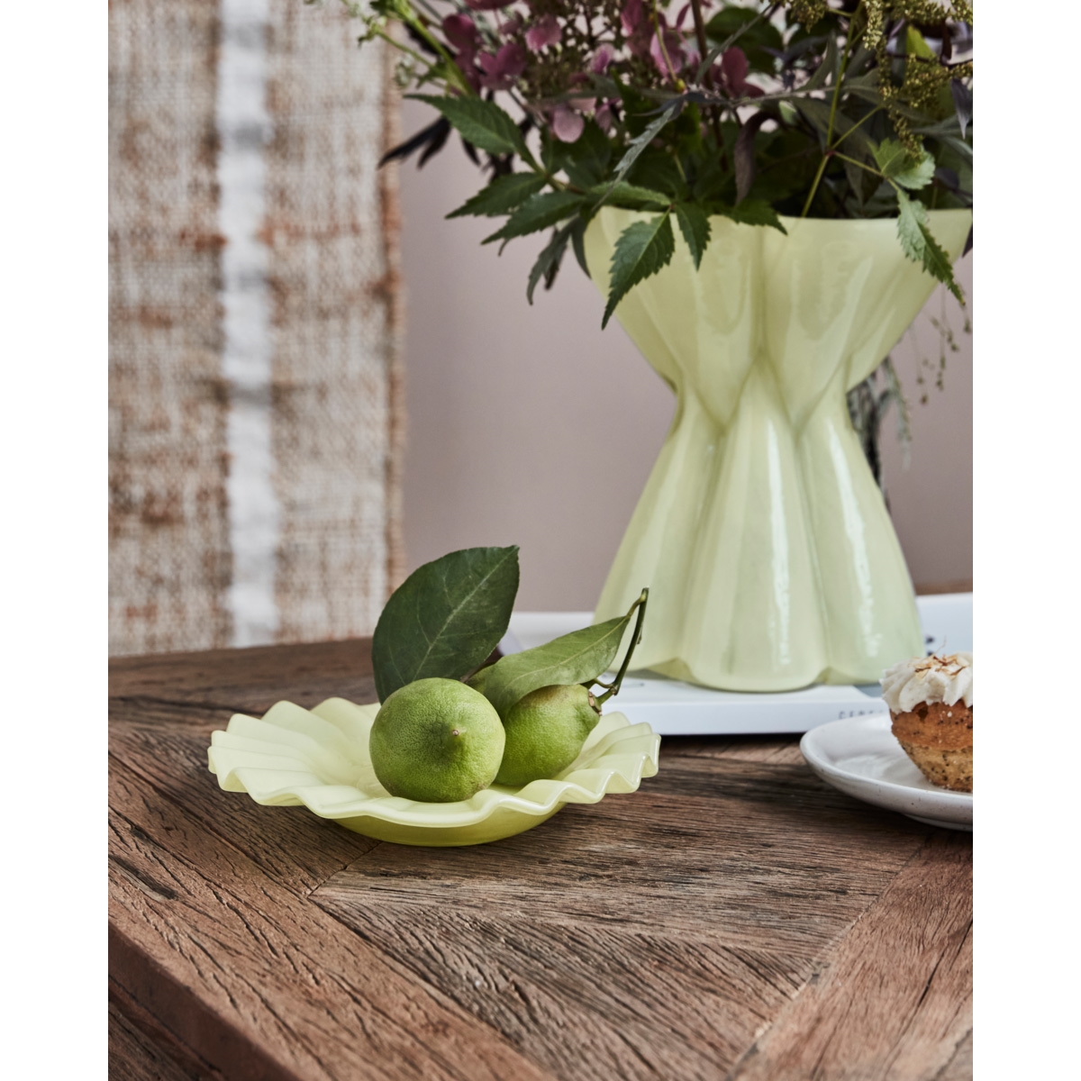 Sæt et feminint præg på din indretning med dette delikate glasstykke. Den mundblæste og håndlavede, bløde gule nuance giver varme og elegance, hvilket gør den perfekt til at vise smykker eller et stearinlys i en stue eller et soveværelse. Denne alsidige genstand tilføjer en subtil charme til din indretning.- Mundblæst håndværk- Blød gul nuance- Ideel til udstilling af smykker- Passer til stue eller soveværelseTilfør dit hjem subtil elegance med dette alsidige glasstykke.