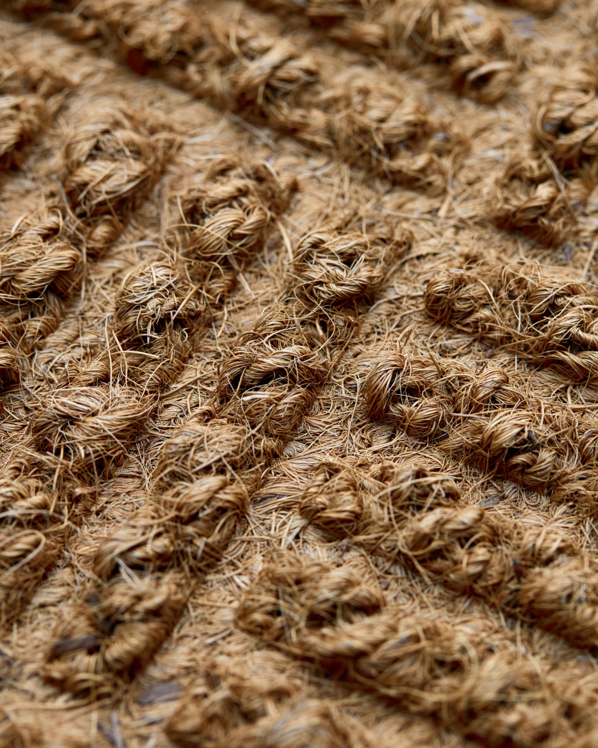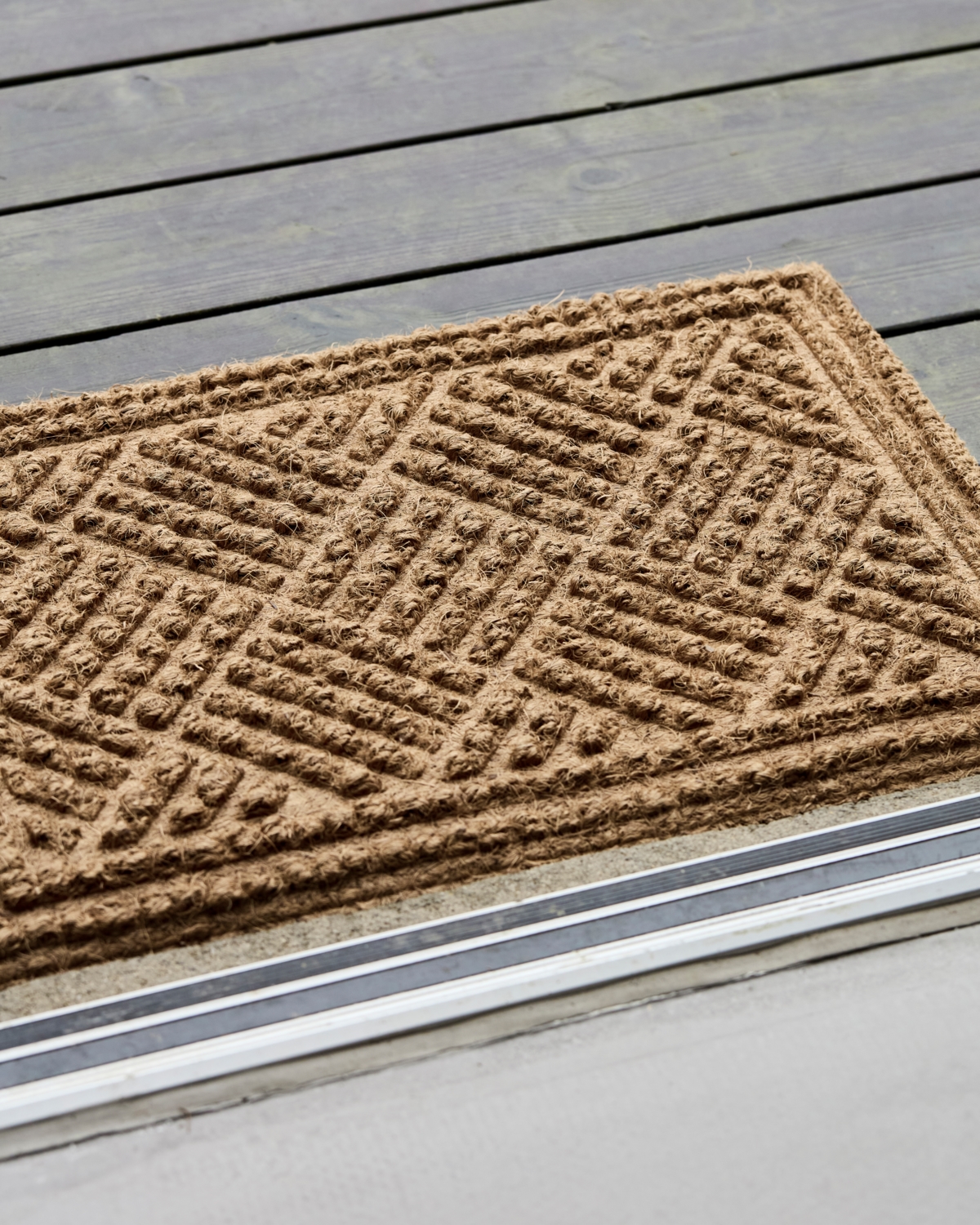 Føl dig velkommen i dit eget hjem med en dørmåtte i slidstærkt kokosfiber og varm naturfarve. Det geometriske reliefmønster giver din entré et eksklusivt og indbydende udtryk.- Robust kokosfiber for længere holdbarhed.- Elegant geometrisk mønster.- Skridsikker bagside i gummi.- Til både udendørs og indendørs brug.Løft indretningen i din entré med naturlig charme og effektiv renholdelse.