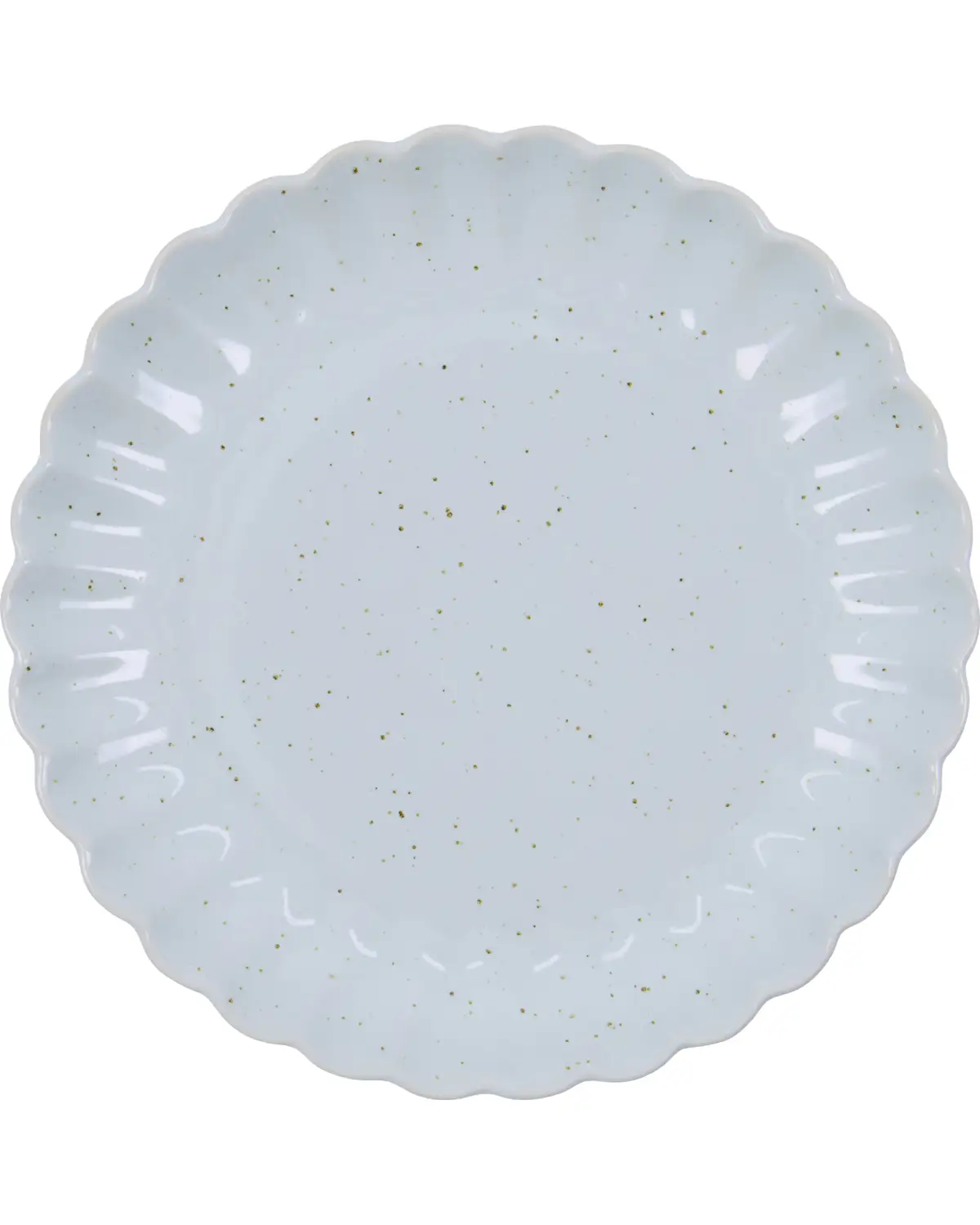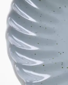 Denne elegante frokost- eller kagetallerken er håndlavet i stentøj med en lys blå reaktiv glasur og smukke buede kanter. Marmorerede prikker og den bløde, feminine bølgeeffekt gør hver tallerken unik og indbydende.- Håndlavet stentøj med reaktiv glasur.- Markant bølget kant.- Marmoreret look med små prikker.- Elegant, moderne farvetone.Kombiner med matchende krus og skåle, og gør hver dag til en særlig anledning.